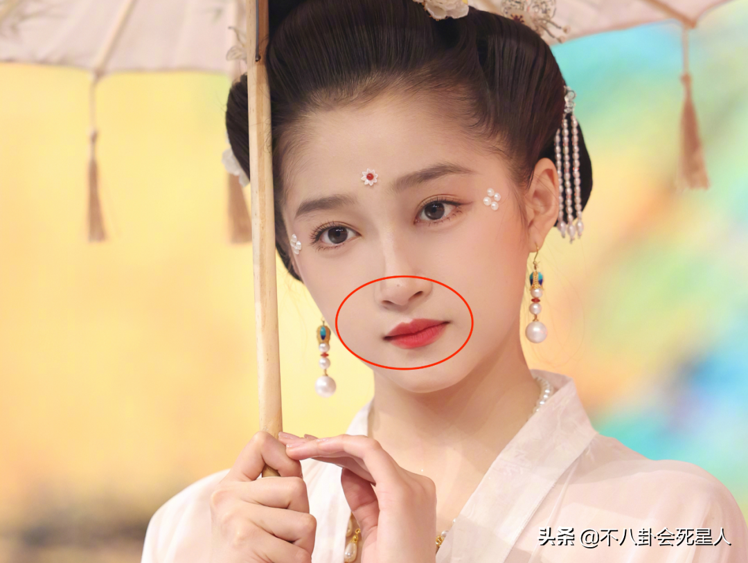 热巴在某次直播中,双唇非常饱满,跟她以往的画风完全不一样,于是就有人疑惑:热巴去丰唇了?其实,她只是把口红化得超出了唇线,整个人的攻击性立马就没这么强了。
