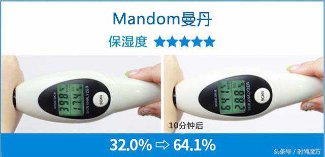 测试结果显示,Mandom曼丹使用卸妆水洁面后肌肤水分增加了32.1%。