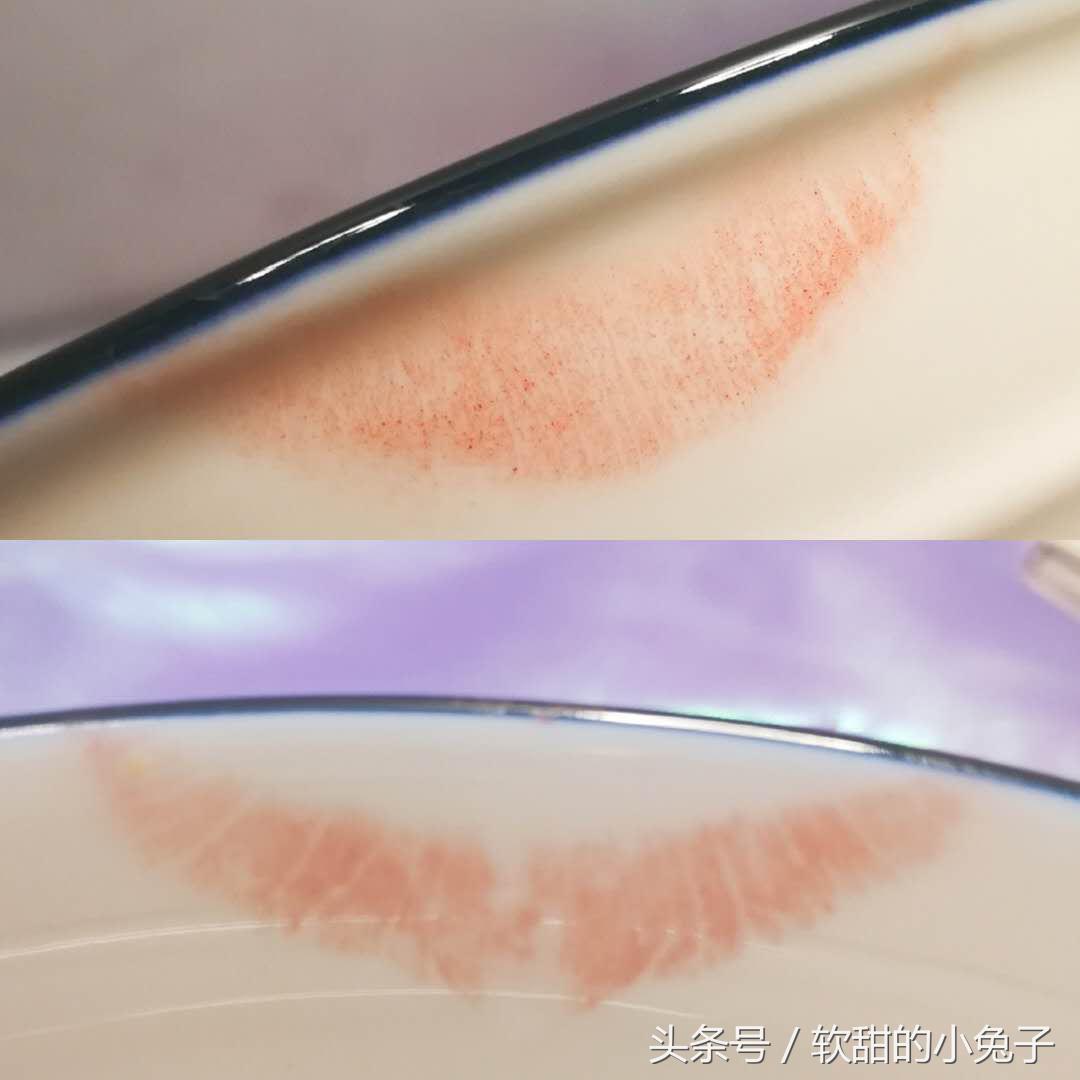 测评方式:涂完口红后,用白瓷杯子喝水,测试它有没有沾杯状况。