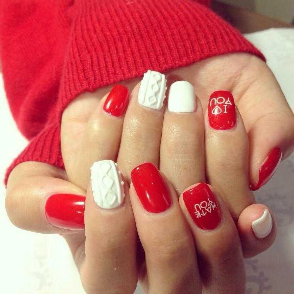 红白搭配可谓是新年的基础搭配了,鲜艳的亮红色加上白色的字母,非常吸睛。再加上一个有凸起花纹的白色甲面,一下子就让整个甲面变得可爱起来。