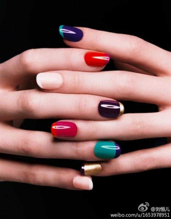多色搭配的法式美甲,让冬天充满活力不乏味。鲜艳耀眼的红色,低调奢华的金色,可爱少女的粉色,暗调沉稳的蓝紫色,还有清新潮范的绿色,给新的一年,一个不一样的自己。