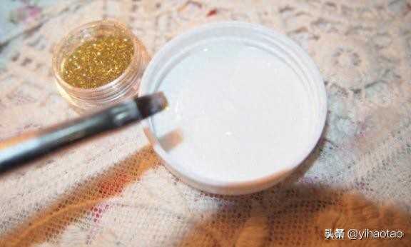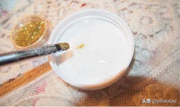 上金色闪粉挑一支小点的刷子,准备一点透明的光疗胶开始调和了