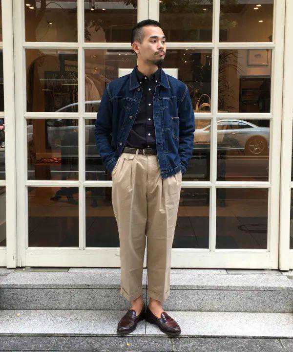 对于小个子来说,这件短款的牛仔外套就显得很友好,加上一条高腰锥形的九分裤造型整体的视觉比例就显得很出众,搭配乐福鞋也显得精致完美,造型沉稳时髦。