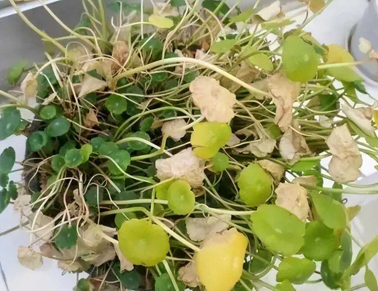 室内养的铜钱草,大都存在光照不足,通风不良的情况,很容易出现徒长、叶柄细软、叶片小而发黄的现象。