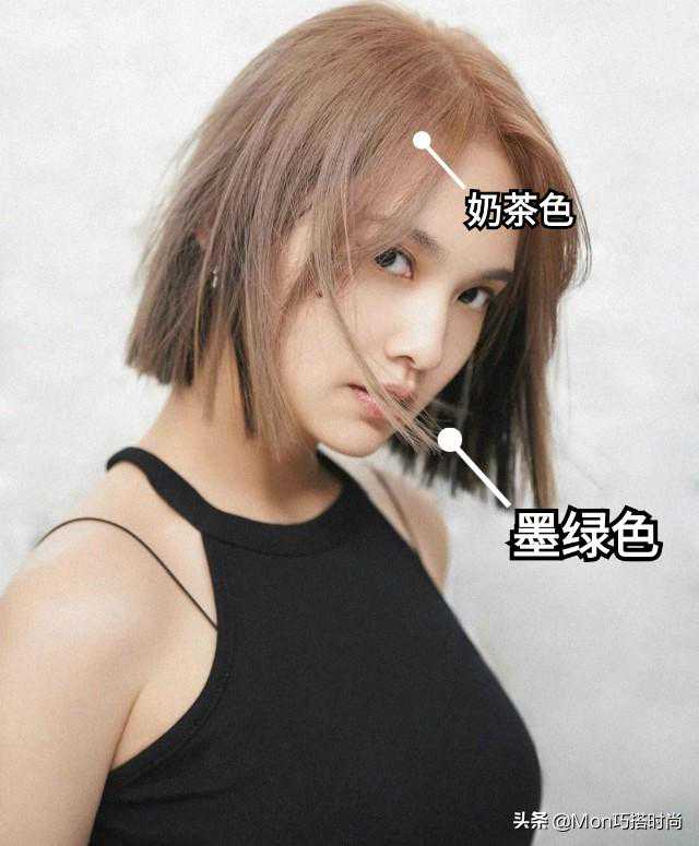 绿色调的奶茶发色选择通过挑染的方式比直接在染发膏里添加绿色调染发剂更加有层次感,也更不容易踩雷。推荐像杨丞琳小姐姐一样在内层头发选择绿色挑染,超级有立体感。