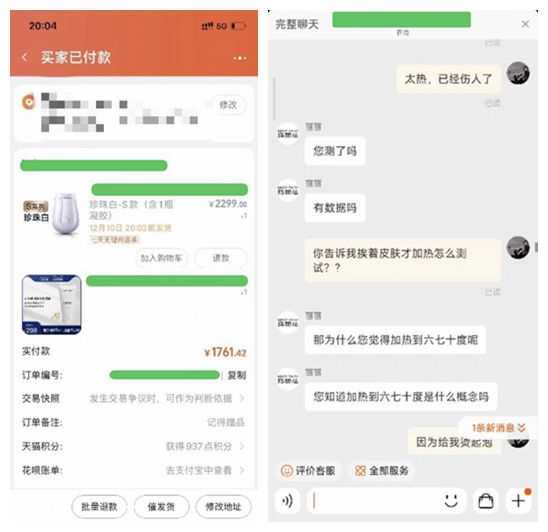 济南的一位消费者则是遇到了温控问题,本来购买的美容仪最高温度43℃,但使用过程中会超过60℃。“它忽然一下升到六七十摄氏度,都反应不及,脸就会被烫红或者烫出泡。后来我们当地的食药监工作人员拿手试了一下,也把他的手给烫红了。”