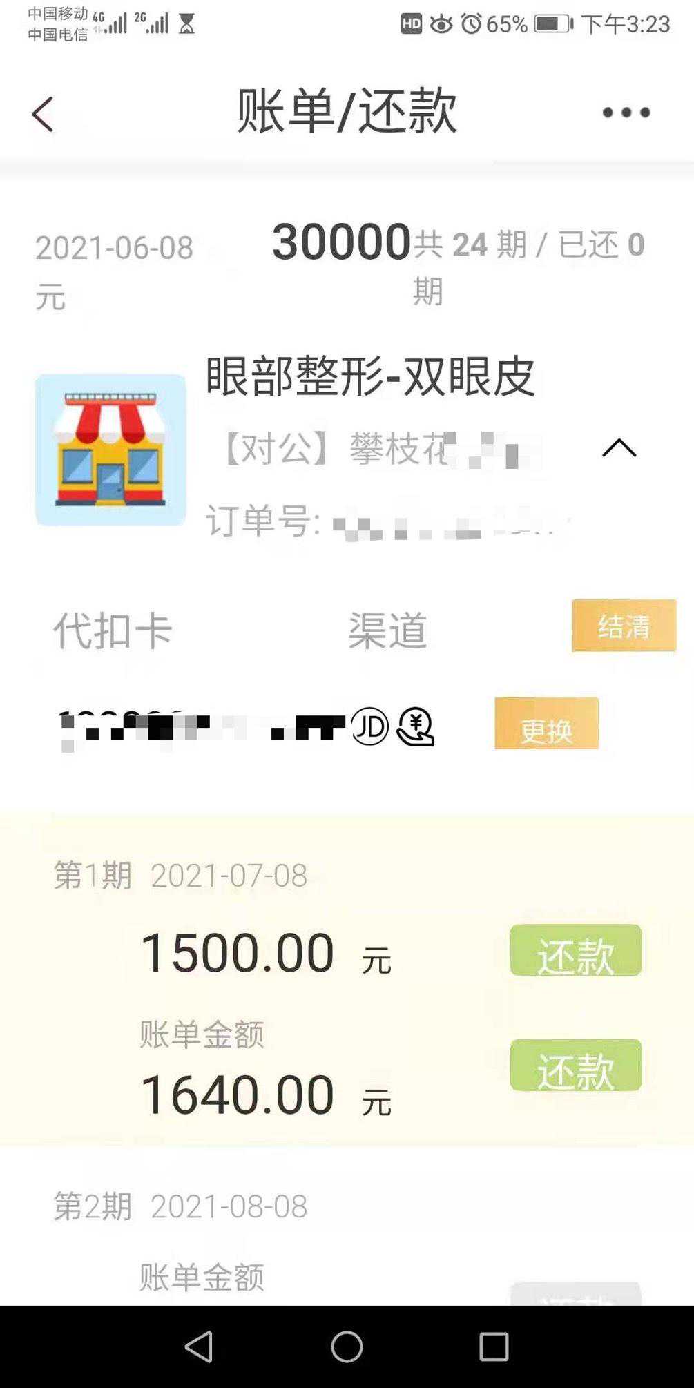 李如欣没有做任何项目却背上了“美容贷”(受访者供图)