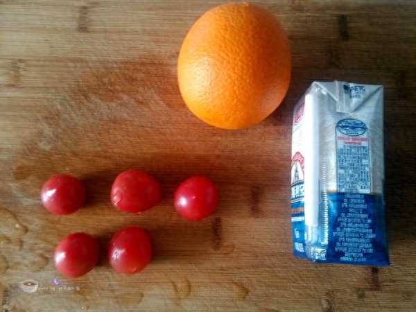 原材料:【主料】:酸奶200克、橙子一个【配料】:圣女果5个