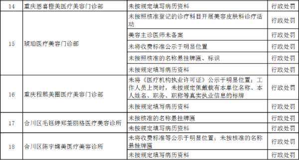 8月25日,市卫生健康综合行政执法总队通报了2020年重庆市“你点名我监督”暨成渝地区医疗美容行业异地交叉执法检查活动结果。结果显示,琥珀医疗美容门诊部、重庆万家燕医院等18家医疗美容机构被立案查处,将受到行政处罚。
