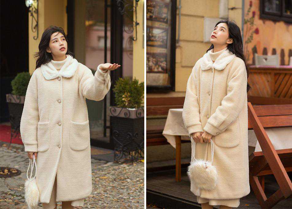 米白色,温柔典雅的感觉,又十分御寒保暖。搭配更是复古感十足,简简单单的版型,穿上既显瘦又有点小女人的FEEL,