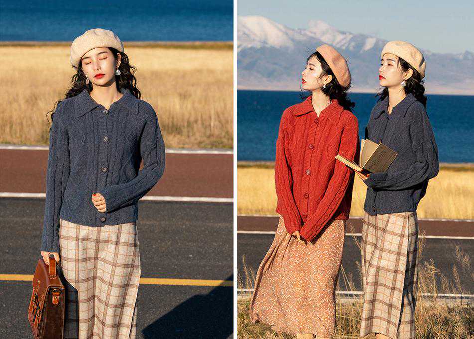 复古感十足的毛衣开衫、雪白色的纯色底、让整件纯手工刺绣的钩花颜色凸显出来。再加上镶边珍珠扣子的点缀,真的是让人爱不释手呢。