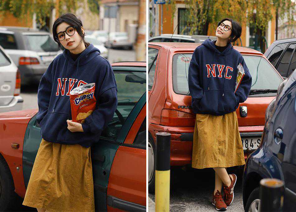 连帽的设计减龄有活力,冬天冷的时候还可把帽子戴上,密实防风锁住温暖,舒适又保暖给你萌满满的温暖。搭配上也狠EASY宽松的版型内搭毛衣针织均可,下半身搭配半裙或是牛仔裤就可以了。