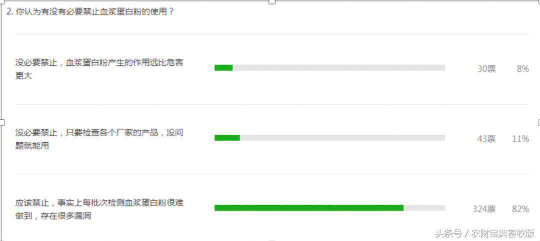 9月13日,新牧网微信做了一项调研,82%的行业人士认为应该禁止血浆蛋白粉的使用。