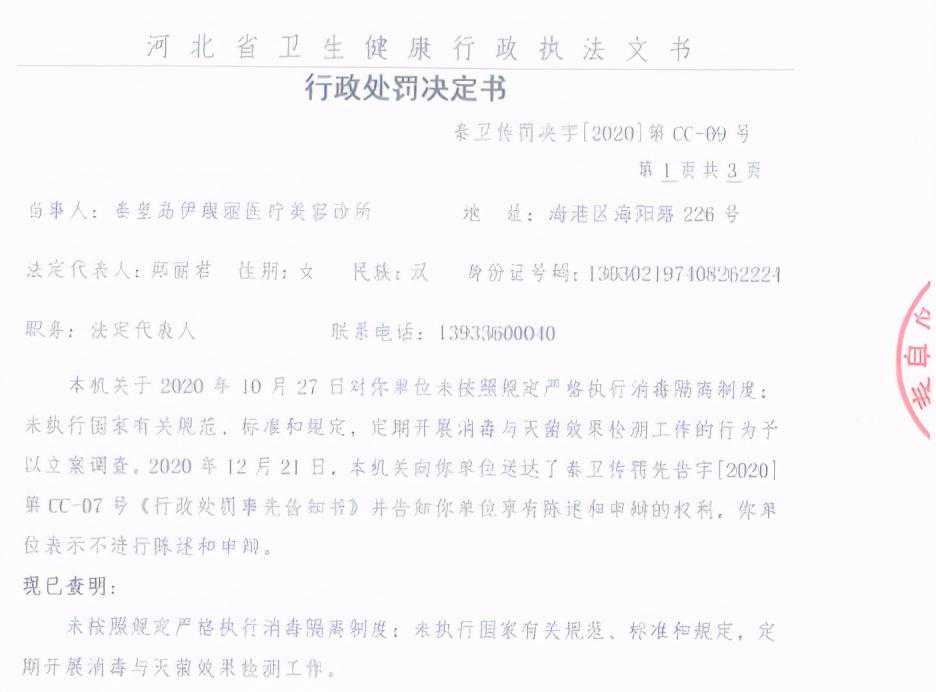 近期,秦皇岛市卫生健康委员会通报日常监督检查结果,多家医院、美容机构存在问题,现将检查发现的违规问题进行公示