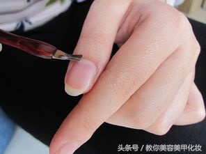 第三步,推甲。用小钢推推去指甲死皮