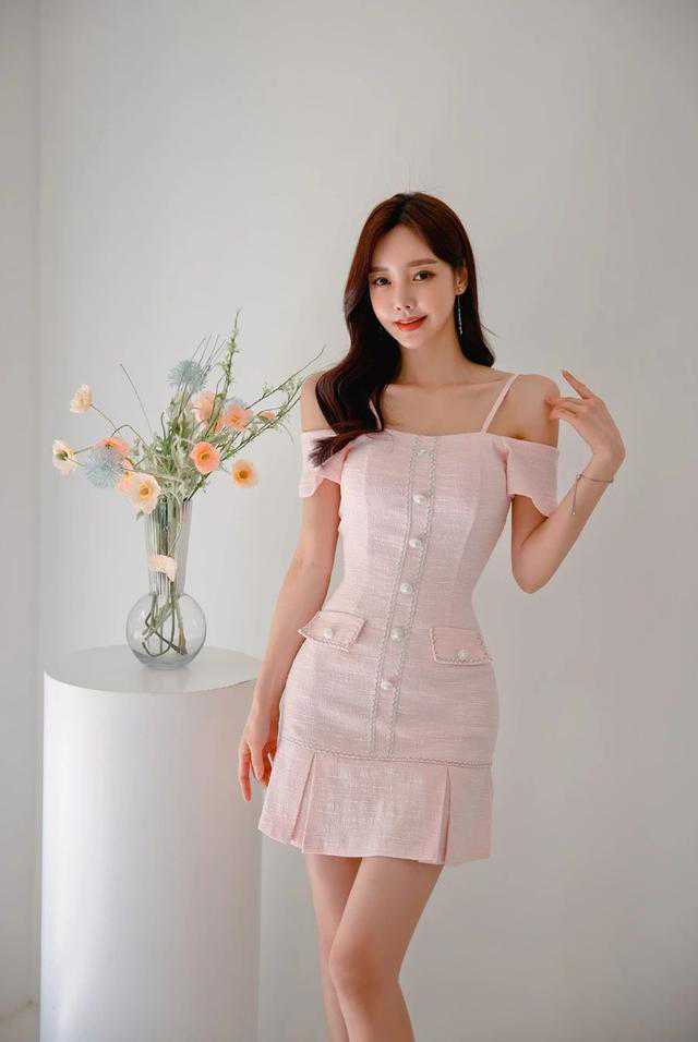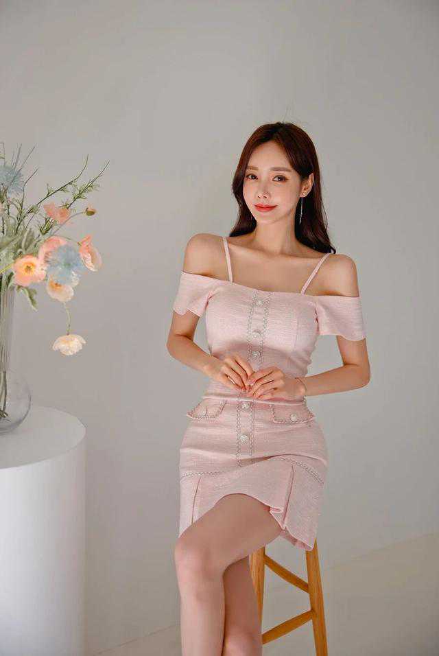 孙允珠,作为一位韩国女模特,总是能够给人留下深刻的印象。这次,她穿上了一件雨后霓虹粉蜜经典细吊肩衣裙,完美展现了她白皙的肌肤,而粉色的设计更是增添了一份柔美的气息。