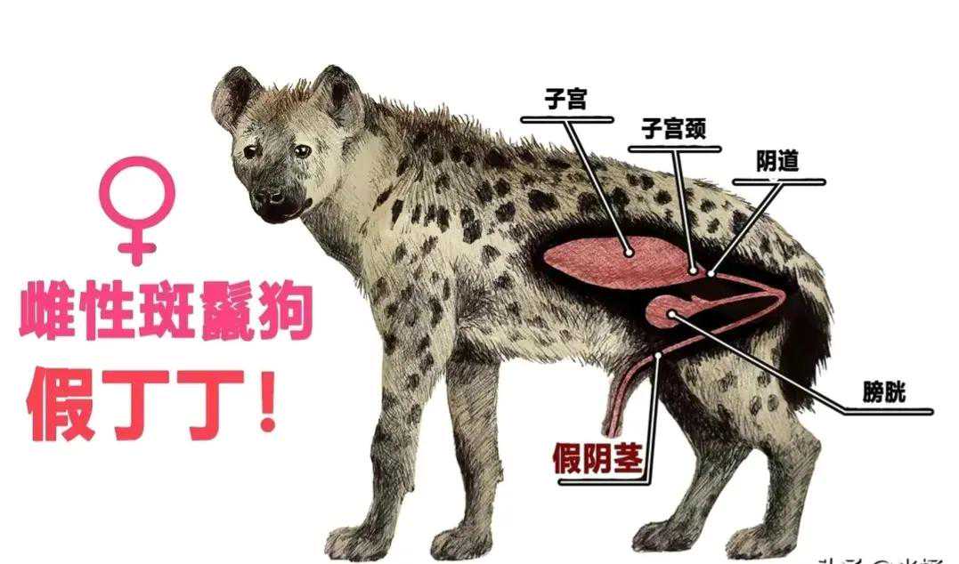 因为雌性斑鬣狗的生殖器几乎与雄性的一样。雌性斑鬣狗拥有极为复杂的生殖器,形成了一个像雄性一样的假阴囊,生殖器有时候甚至能勃起,令人大跌眼镜。