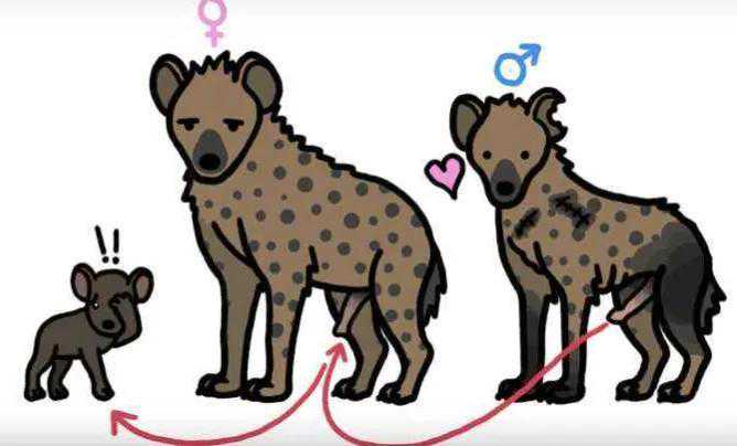 雌性斑鬣狗通过胎盘将这些雄性激素传给后代,让两种性别的幼崽在妊娠期都表现为高水平的雄性特征,所以斑鬣狗幼崽的性别尤其难以区分,要通过分子检测的手段才能辨别。