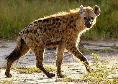 最明显的地方是,它们前腿长后腿短,是个“前轮驱动”的家伙,这与多数食肉动物“后轮驱动”的情况正好相反。当然,真正使斑鬣狗得名的原因,是它们颈部那显眼的鬣毛。