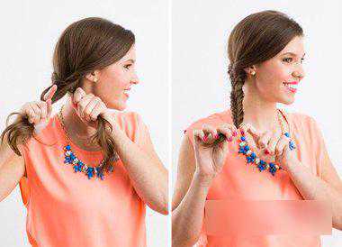 第三步:继续往下进行编发,在编发的过程中尽量的往右侧倾斜,侧编发是比较有灵动感的编发造型,这样的编发不会太单调。