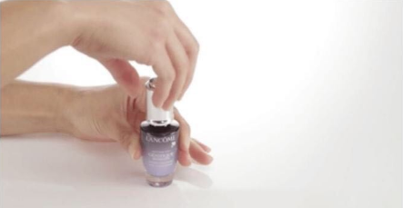 第一步:顺时针推扭黑帽,将蓝色精华液释放到基础精华液中。