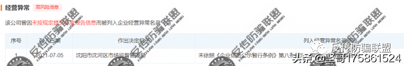 据天眼查显示,2021年7月5日,轻涵生物公司因“未依照《企业信息公示暂行条例》第八条规定的期限公示年度报告”被沈阳市沈河区市场监督管理局列入经营异常。