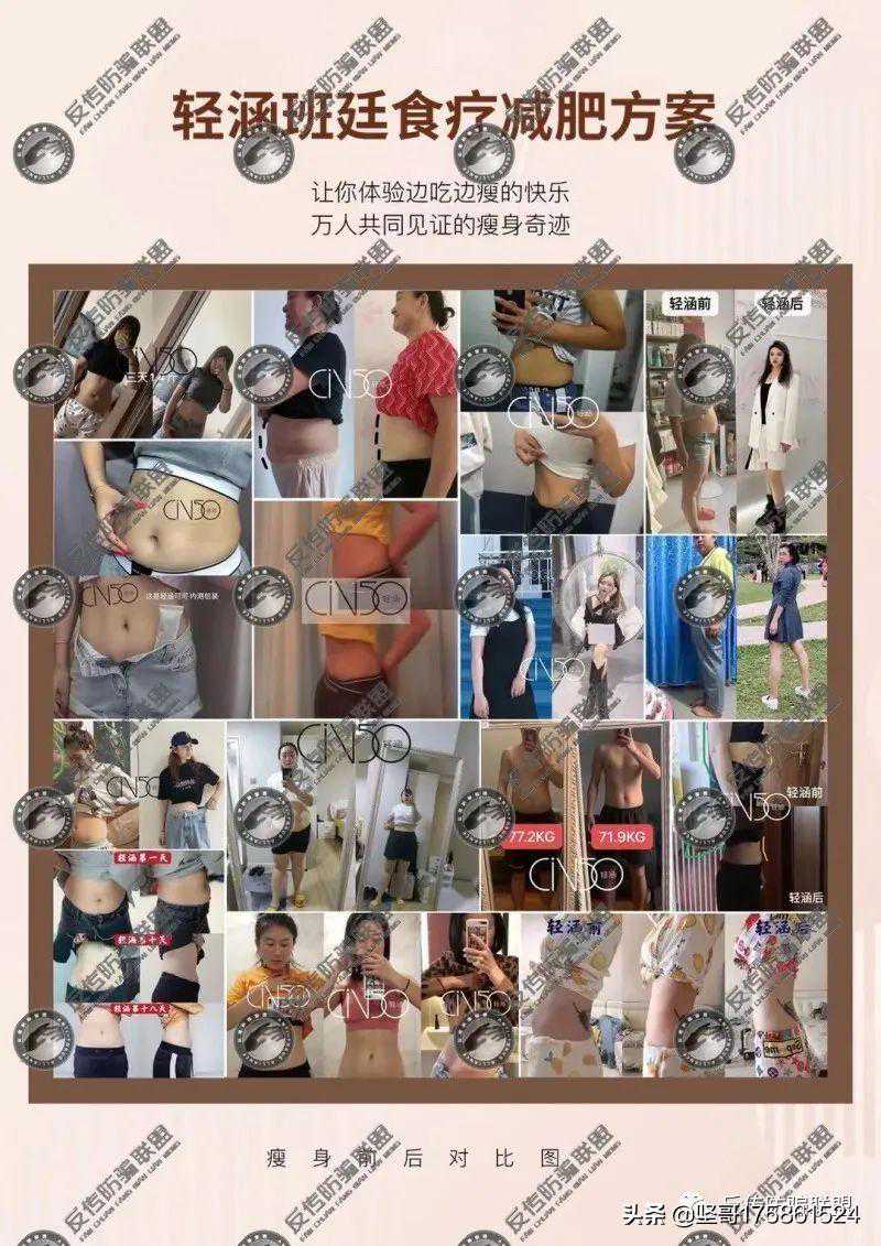 不仅如此,还发布了大量信用轻涵前后的瘦身对比图,同时配文“体验边吃边喝的快乐、万人共同见证瘦身奇迹”。