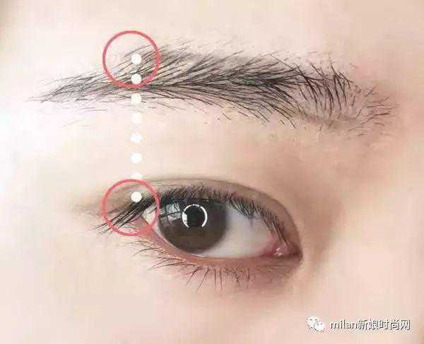 眉毛稀少的女生其实比较适合下图白色虚线勾勒出来的这种标准弧形眉,眉毛稀少的部位用浅色眉粉不断填充就好了,能够打造出一款温柔感的自然眉型。