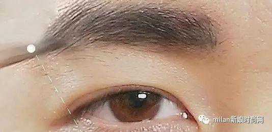 男生眉毛化妆教程第四步:那么也是一样的,我们需要把眉头位置连接鼻侧在一条垂直线上,也可以根据眼距调节。