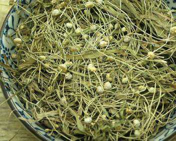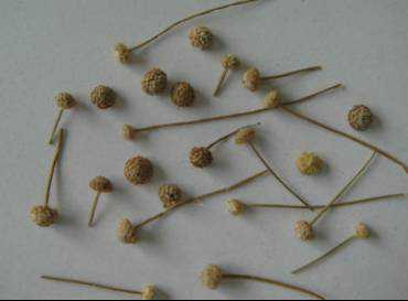 本品多扎成小把,全体呈淡棕色。花茎纤细表面有4-5条扭曲棱线,质柔软不易折断。头状花序半球形,紧密排列成盘状。手搓碎花序可见黑色花药及细小灰绿色的果实。气微味淡。