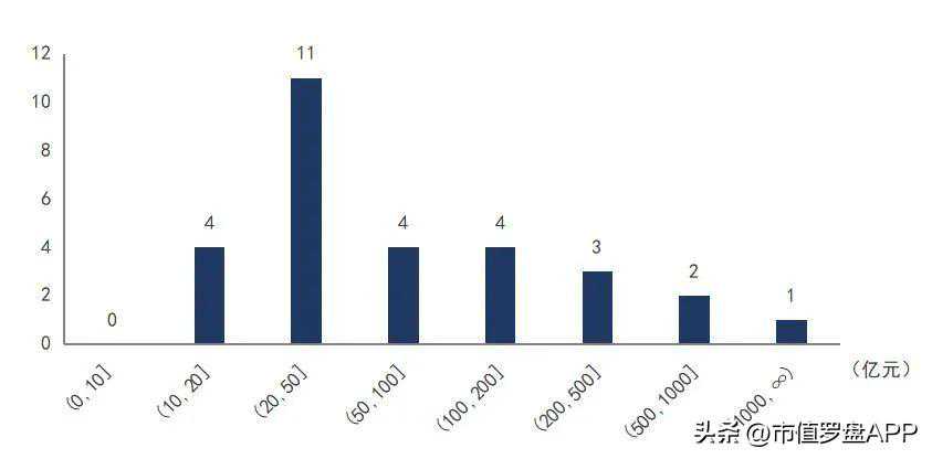 图1:2022年8月31日美容护理行业A股上市公司市值分布(单位:家)