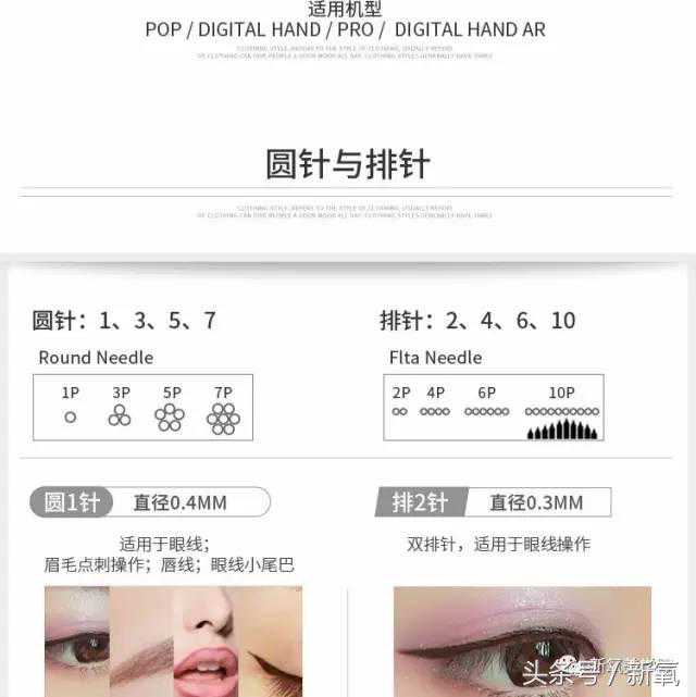 韩式半永久的针头是一人一针,并且还会按照纹绣区域的不同采用不同的针型。