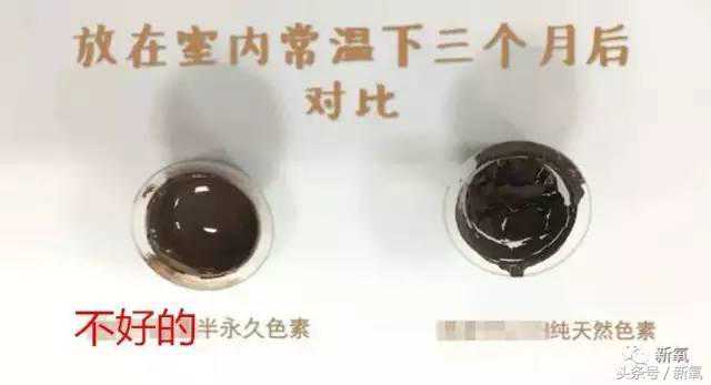不好的色素滴一滴到清水里会立即溶于水,人的表皮中70%是水分,可想而知水溶性化学色素进到皮肤里马上就会晕染。