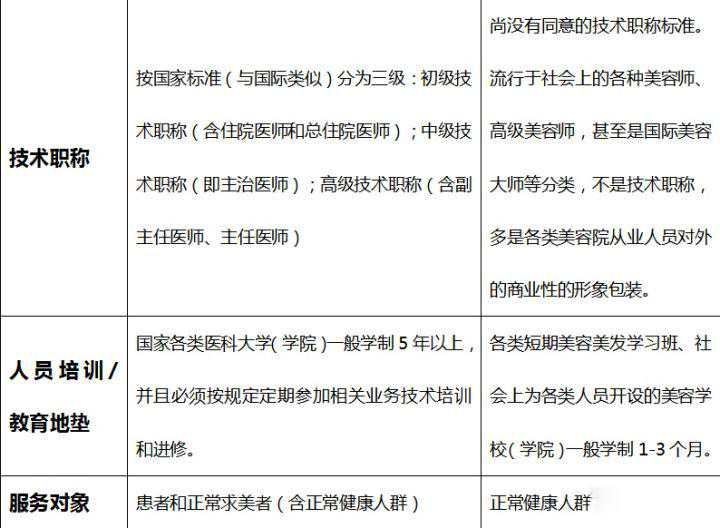 相信下面这张表,仙女们就清楚了:医疗美容与生活美容的区别。