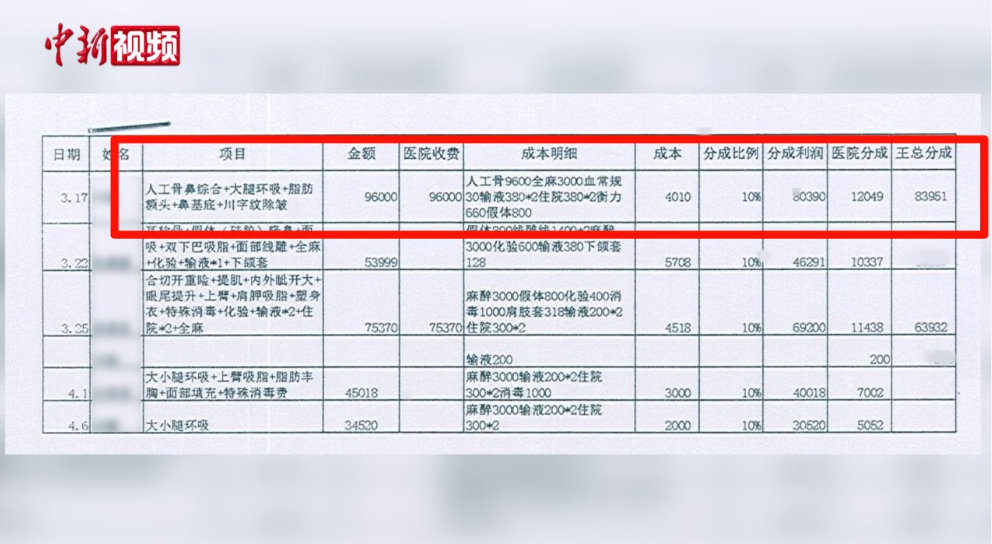 记者从警方提供的消费明细中发现,医美诊所标价近十万元的综合整形手术,实际成本仅有四千余元,而介绍求职者来的机构可分成八万余元。