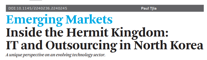 保罗·提嘉在2012年发布了一份报告——《在隐秘的国家内:朝鲜的IT行业与外包》。