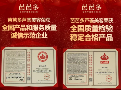 在市场大潮中,芭芭多以独特的魅力昂首屹立23载,屡受嘉奖,多次获得“人气品牌”“科技创新”等荣誉。近期,由国家质检总局和中国质量检验协会主办的“2020年3•15产品和服务质量诚信承诺”主题活动圆满结束,芭芭多再一次大放异彩。在此次3•15主题活动中,芭芭多隶属的生产厂家——珠海积家世纪日化有限公司,斩获两项大奖,荣获“全国产品和服务质量诚信示范企业”和“全国质量检验稳定合格产品”称号。两项荣誉的获得,再次证明芭芭多23年来始终坚持以消费者为本,产品质量在各项检测中均位列行业前茅,在产品品质、质量稳定性、品牌形象上都具有突出优势。芭芭多的出色表现,让芦荟美容再一次成为镁光灯下的焦点,成功引领新国货芦荟美肤风潮。