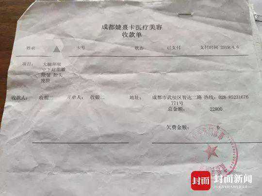 12月3日,余女士今年45岁,她告诉记者,今年5月她在熹亚美容做了一次医疗美容手术,包括大腿抽脂,瘦脸,面部整形等内容,支付了22800元,“我首付了4000元,剩余款项是按揭的,每个月还款1124元。”