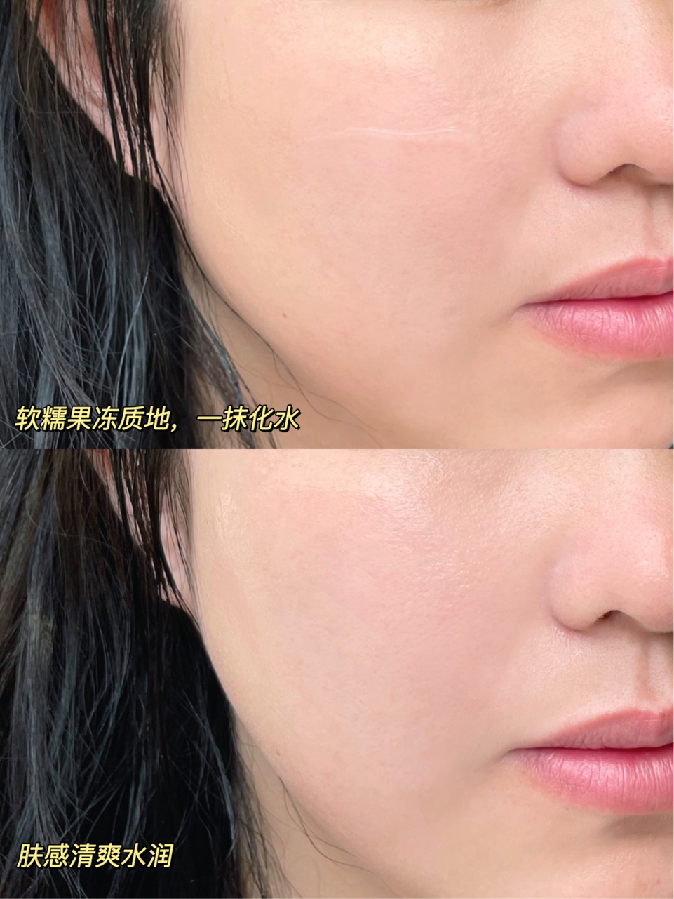质地无比轻盈好像果冻,一触即化,没有酒精对于敏肌小可爱更加友好!上脸十分清爽好吸收,不担心会闷痘和搓泥,减少脸上油光的同时,又让皮肤全天保持水润,妥妥滴油皮亲妈!