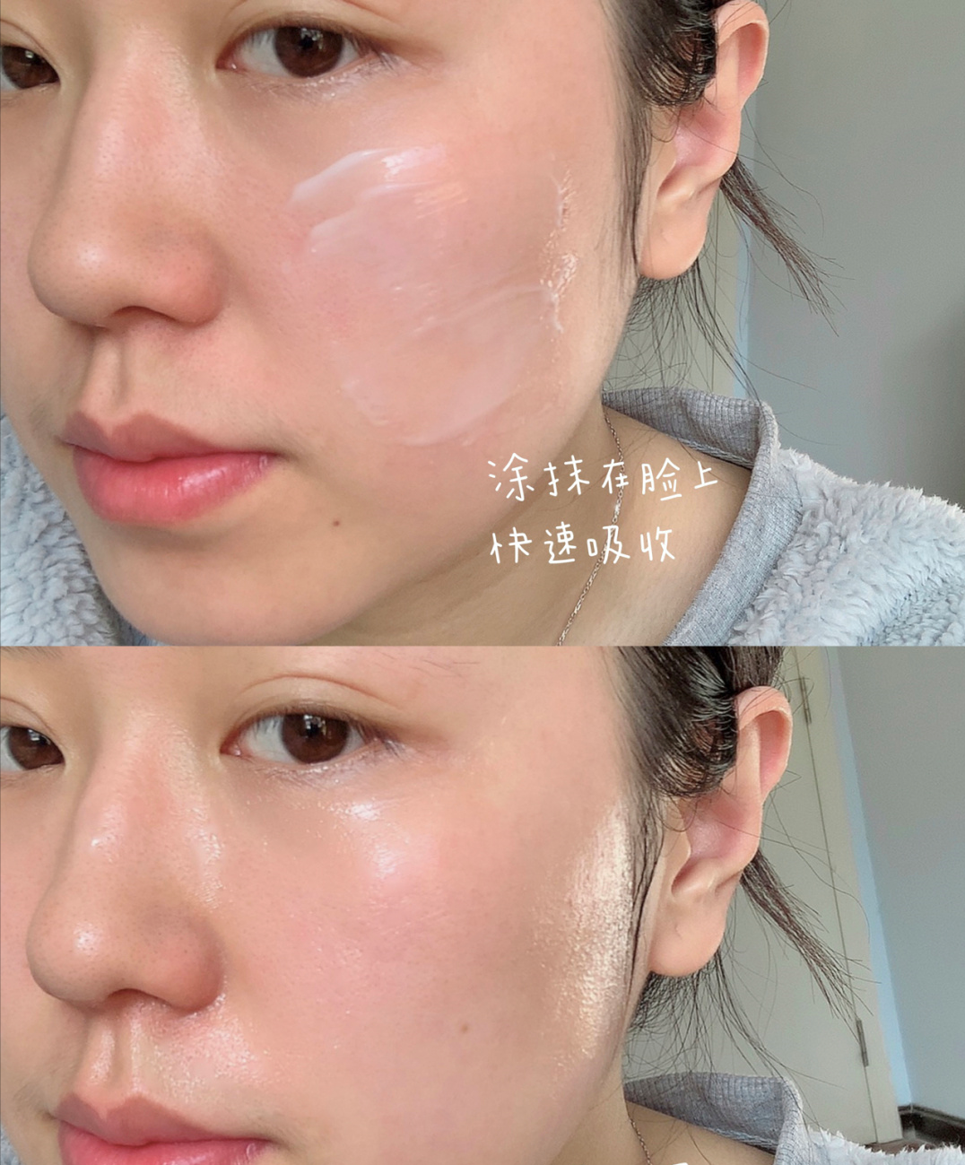 这款面霜不油不腻,上脸非常非常好推开,很顺滑,好像水份包裹在霜里面的感觉。吸收很快,脸上不会油光闪闪。用完感到脸上形成了一层水膜,防止皮肤的水分流失。
