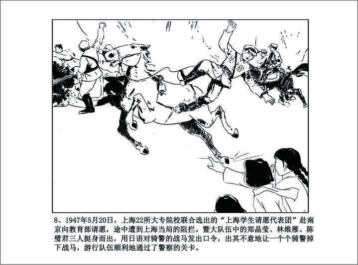 1947年5月20日,上海22所大专院校联合选出的“上海学生请愿代表团”赴南京向教育部请愿,沿途高呼“我们吃不饱!”“我们要求增拨教育经费!”“我们反对内战,我们要提高助学金!”“代表请愿不成功,我们全体学生到南京去!”途经之处,群情激奋,火车站里热火朝天。
