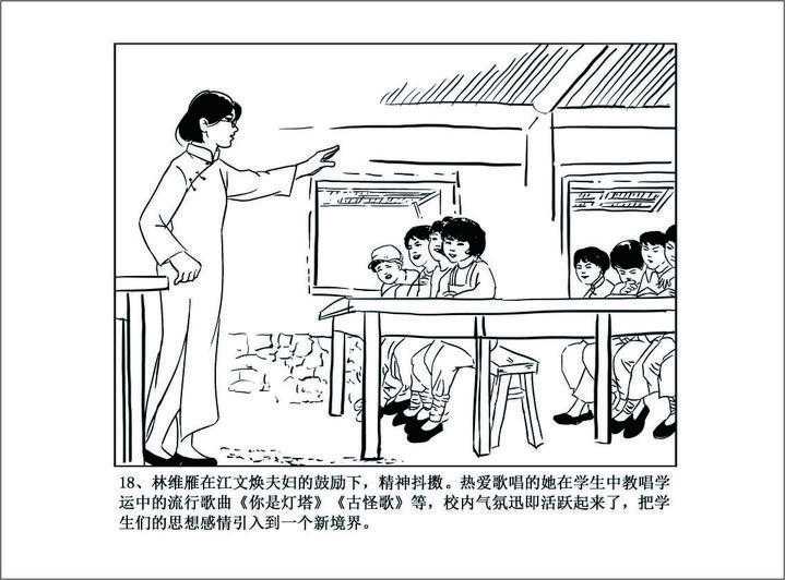 林维雁在江文焕夫妇的鼓励下,精神抖擞,热爱歌唱的她在学生中教唱学运中的流行歌曲《你是灯塔》《古怪歌》等,校内气氛迅即活跃起来,学生们的思想感情被引入到一个新境界。