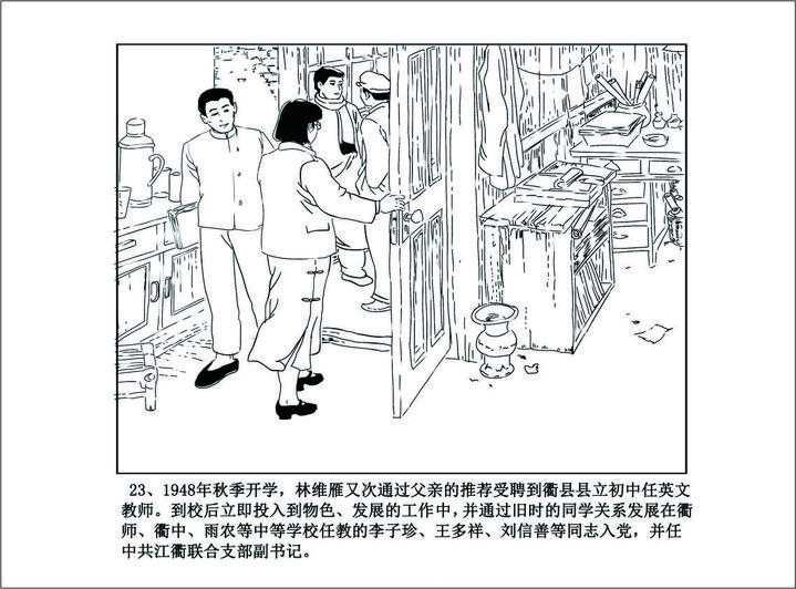 1948年秋季开学,林维雁又一次通过父亲的举荐受聘到衢县县立初中任英文教师。到校后林维雁立即投入物色、发展党员的工作。她通过旧时的同学关系,发展在衢师、衢中、雨农等学校任教的李子珍、王多祥、刘信善入党,自己提任中共江衢联合支部副书记。并联合支部在衢师物色发展对象,成立了直属衢州师范党小组。党员有许希风、王友玉、虞绍华、崔经琦、吕万海、毛以成。