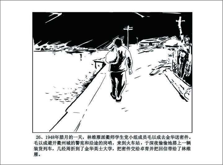 1948年腊月的一天,林维雁派衢师学生党小组成员毛以成去金华送密件。当夜深人静时,毛以成通过古城墙的一条菜地小路,到了她的住处。她开门见山地说:“请你来是想让你去趟金华。”边说边从抽屉深处拿出一包东西。接着又说:“你到金华英士大学,找一个叫卓青的人,见了卓青后,只说你是毛梅(党内化名)派来的。”并再三强调,这包密件比生命还重要,万一遇到敌人,千万不能落到敌人手上,是要人头落地的。她考虑非常细致,接着又拿出一张刚发行的25元金元券,轻轻地说:“这钱就带在路上用吧!”毛以成还是第一次见到这么大面额的钱,内心十分矛盾,带上吧,怎么能用她的钱;不带吧,又怎么出远门呢?但是,他还是把密件和钱收下来,避开衢州城的警宪和沿途的岗哨,来到火车站。于深夜1点,偷偷地搭上一辆装货列车,到了金华,住进一家小客栈,设法避开宪兵检查。黎明后几经周折,毛以成到了英士大学,推开卓青的寝室房门,卓青还躺在床上。毛以成迅即直言:“我是毛梅派来的人”。卓青从容地起来接过密件,又招待毛以成吃了早饭,并写了回信。毛以成仍旧在深夜搭装货列车,回到衢州,顺利地完成了组织交办的任务。毛以成把卓青的回信和25元金券一并给了林维雁。林维雁收好信件,对着那张没有动用过的金元券问:“怎么又还回来?”毛以成如实说:“来回都没有买车票,这钱再也没有用处了。”林维雁看他态度诚恳,才把钱收回去。