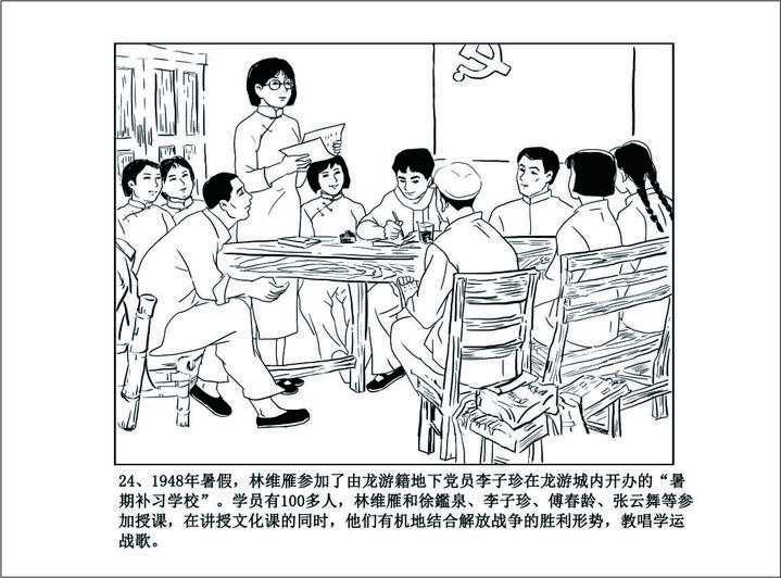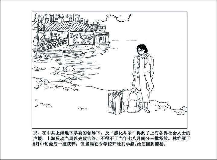 林维雁被学校除名,回到寝室,同学们争相问她:“你是民盟还是中共?”她平静地回答:“我什么都不是,我是群众。”接着她挺起胸膛,掷地有声地说:“回去我照样干,加入共产党是我的奋斗目标!”同学们以崇敬的目光送她踏上新的征途。