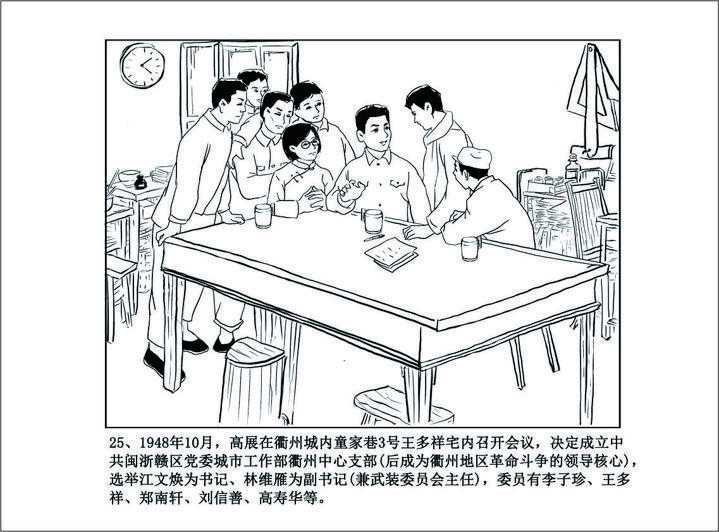1948年10月,根据形势发展和党组织队伍扩大的需要,组织决定在衢州城内童家巷3号王多祥住处召开会议,成立中共闽浙赣区党委城市工作部衢州中心支部(以下简称中心支部),选举江文焕为书记、林维雁为副书记(兼武装委员会主任),委员有李子珍、王多祥、郑南轩、刘信善、高寿华等。中心支部领导衢(县)、江(山)、龙(游)、常(山)、开(化)、遂(昌)六县的党组织,并成立直属衢师学生党小组。这是解放战争时期衢州地区革命斗争的领导核心。