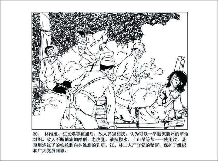 林维雁、江文焕等被捕后,敌人弹冠相庆,认为可以一举歼灭衢州的革命组织,敌人不断地施加酷刑,老虎凳、灌辣椒水、上山吊一一用过,甚至用烧红了的铁丝刺向林维雁的胸部。这是世界酷刑史上罕见的灭绝人性的兽行,但铁骨铮铮的共产党员,仍坚贞不屈,严守党的秘密,誓死保护组织和广大党员同志。
