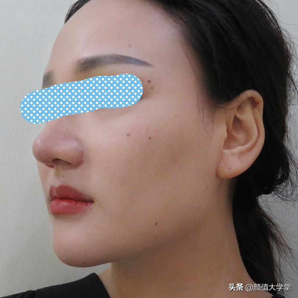 例如下面这位漂亮小姐姐五官基础都很不错,给人一种清纯可人小姑娘的气息,但是仔细一看会发现,小姐姐有着鼻子较短,鼻头圆钝的小缺陷,为了让自己变得更完美,她选择了膨体隆鼻的方法来改善这个小缺陷。