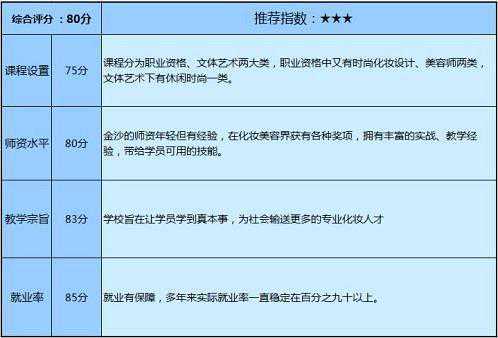 从师资力量,机构权威来说,金沙都是十分优秀的,多年来的就业率也处于一个稳定的较高水平。金沙江苏总部的全套课程体系日臻完善,课程资源丰富,时尚感强,有很大的潜力。杭州分校多少也继承了其总部全面系统的美容美发课程。