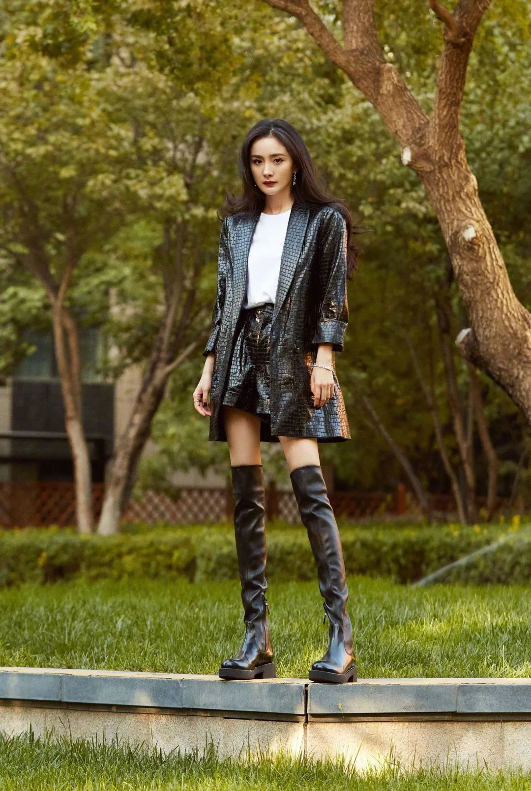 之前杨幂选择了一件长款皮衣搭配皮裤,这种搭配方式简洁又大气,而且通过颜色和材质上呼应起来,就能够降低整个造型的沉闷感,还能够保证穿搭的正确率,同时搭配长筒靴秀出她的筷子腿,十分高级。